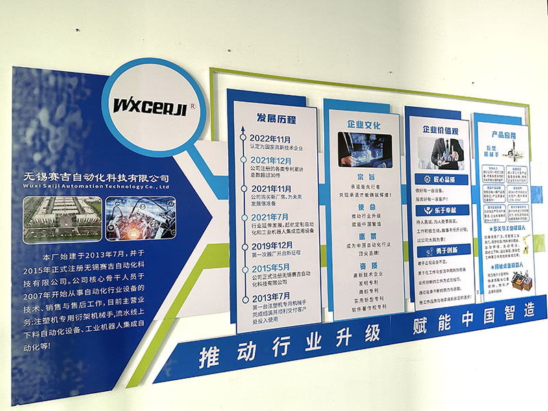 無(wú)錫賽吉自動(dòng)化科技有限公司始建于2013年5月。公司幾位核心骨干人員在2007年到2009年分別入行從事注塑機(jī)專用機(jī)械手研發(fā)、設(shè)計(jì)、機(jī)電、組裝、銷售與售后工作,目前企業(yè)分別有三大塊經(jīng)營(yíng)項(xiàng)目:自動(dòng)化設(shè)備(數(shù)控車床、注塑機(jī)專用取件機(jī)械手為主)設(shè)計(jì)、生產(chǎn)、銷售與服務(wù)。
